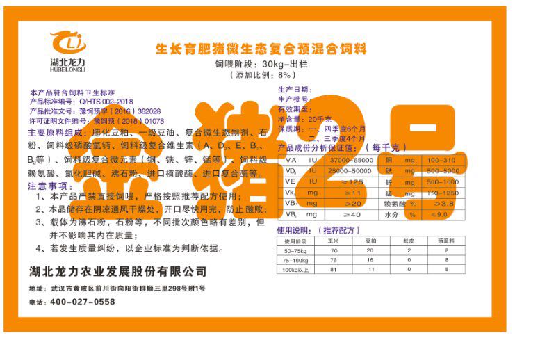 湖北龍力農(nóng)業(yè)發(fā)展股份有限公司坐落于武漢市黃陂區(qū)前川街向陽街群順三里298號(hào)附1號(hào)。公司成立于2014年6月,公司自成立以來把“創(chuàng)全球最大養(yǎng)豬綜合服務(wù)”為企業(yè)愿景。致力于打造教保料品牌”作為公司發(fā)展的明確目標(biāo)。公司一直致力于豬營養(yǎng)的研究和開發(fā),積極與國內(nèi)外高校和科研機(jī)構(gòu)合作,推廣養(yǎng)豬技術(shù)、動(dòng)物營養(yǎng)新概念,向世界農(nóng)牧企業(yè)學(xué)習(xí)與合作。公司采用國內(nèi)先進(jìn)的生產(chǎn)工藝,選擇高精度電子配料秤,高均勻度、無殘留混合機(jī)等先進(jìn)設(shè)備....